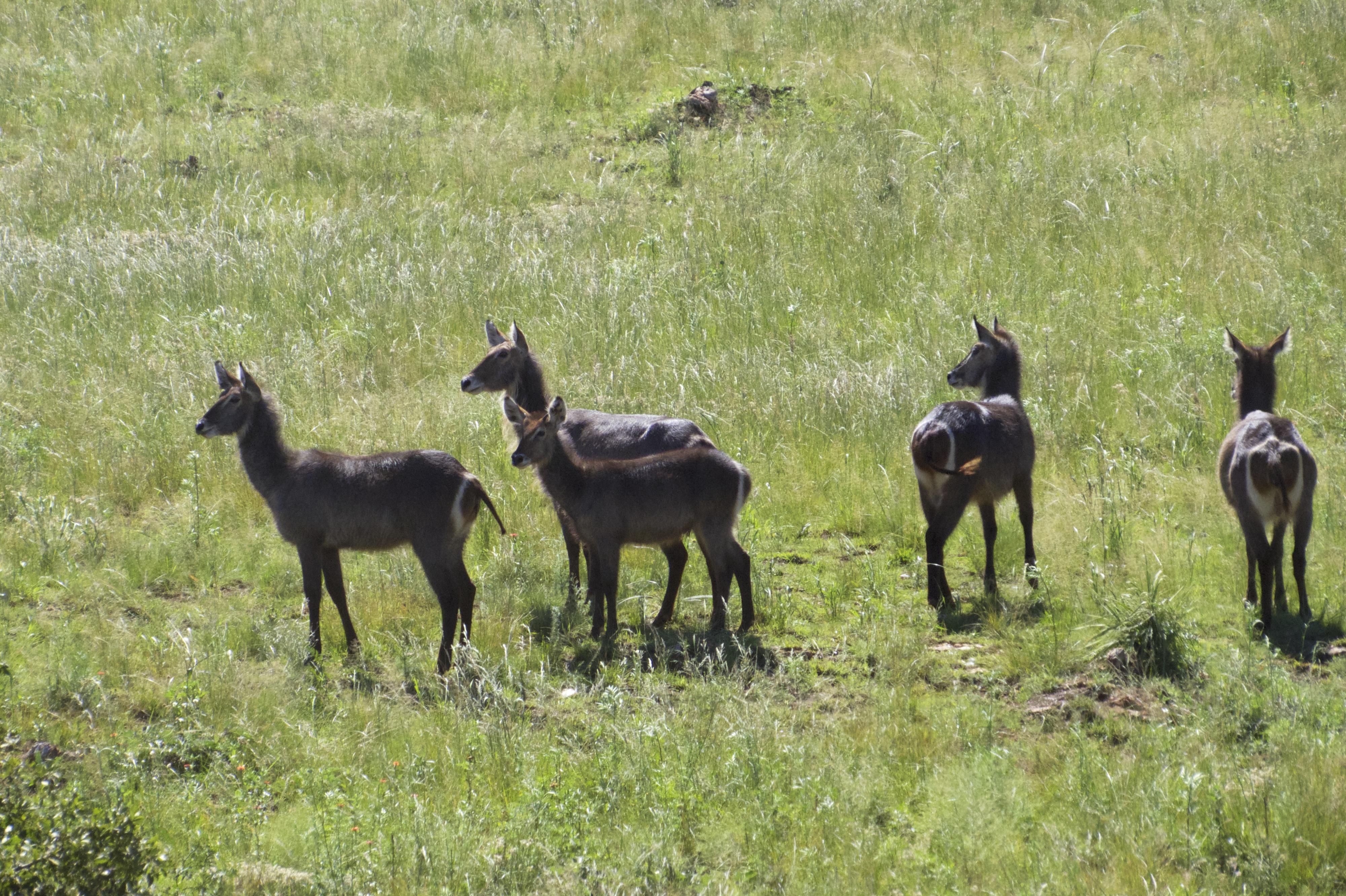 Near to a small pond there was a small herd of waterbuck. These are never far from water, and are prone to dehydration. They are easy to recognise from the white ring on their rumps. It is this that gives the waterbuck the Afrikaans name of ‘kringgat’ meaning ‘circle bottom’