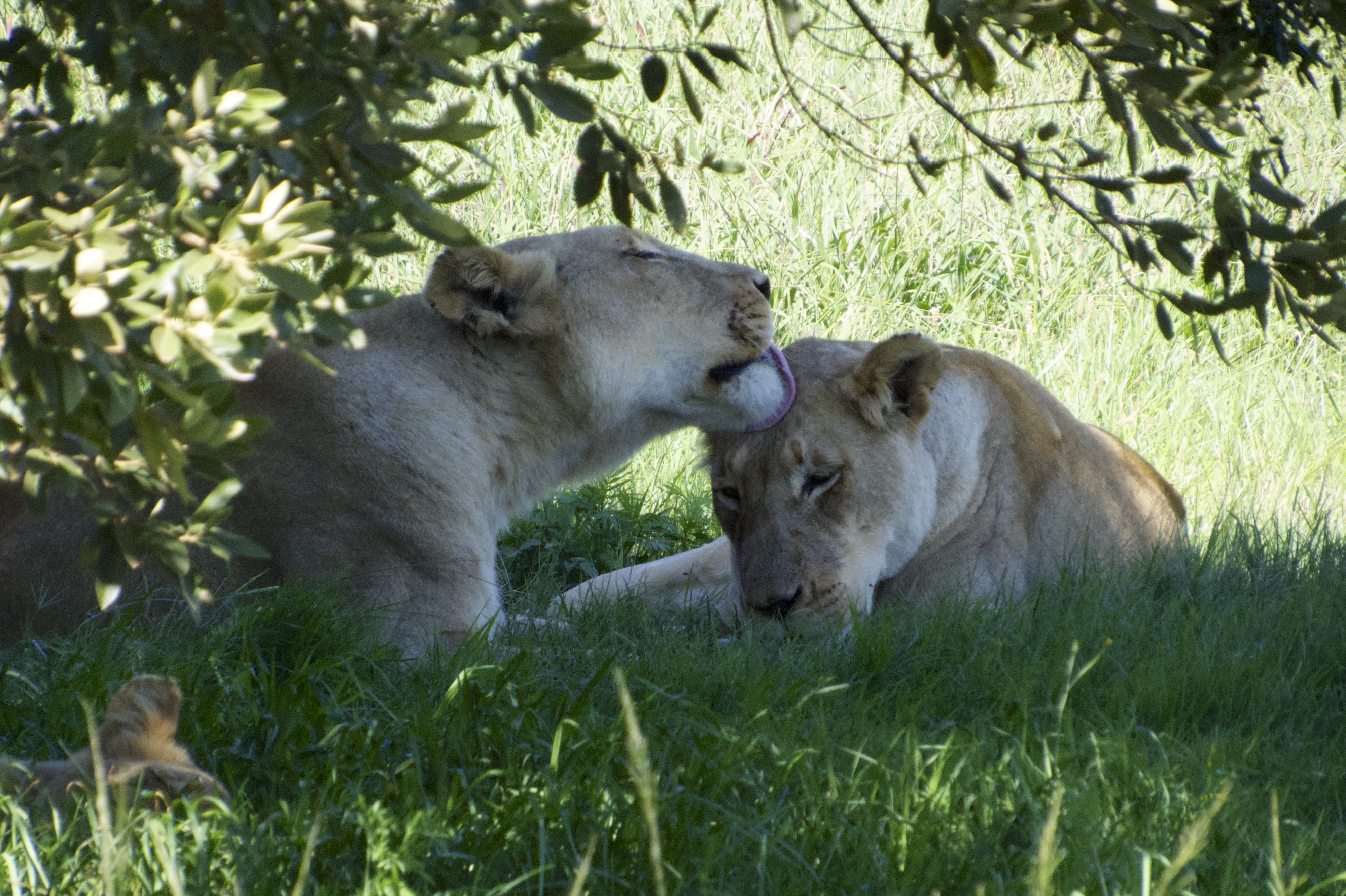 Further along the trail and in a separate but smaller enclosure we had some fantastically close views of two prides of lions. The first group of ‘red lions’ had just finished feeding on the carcasses that had been left for them in the feeding area, and were resting in the shade.