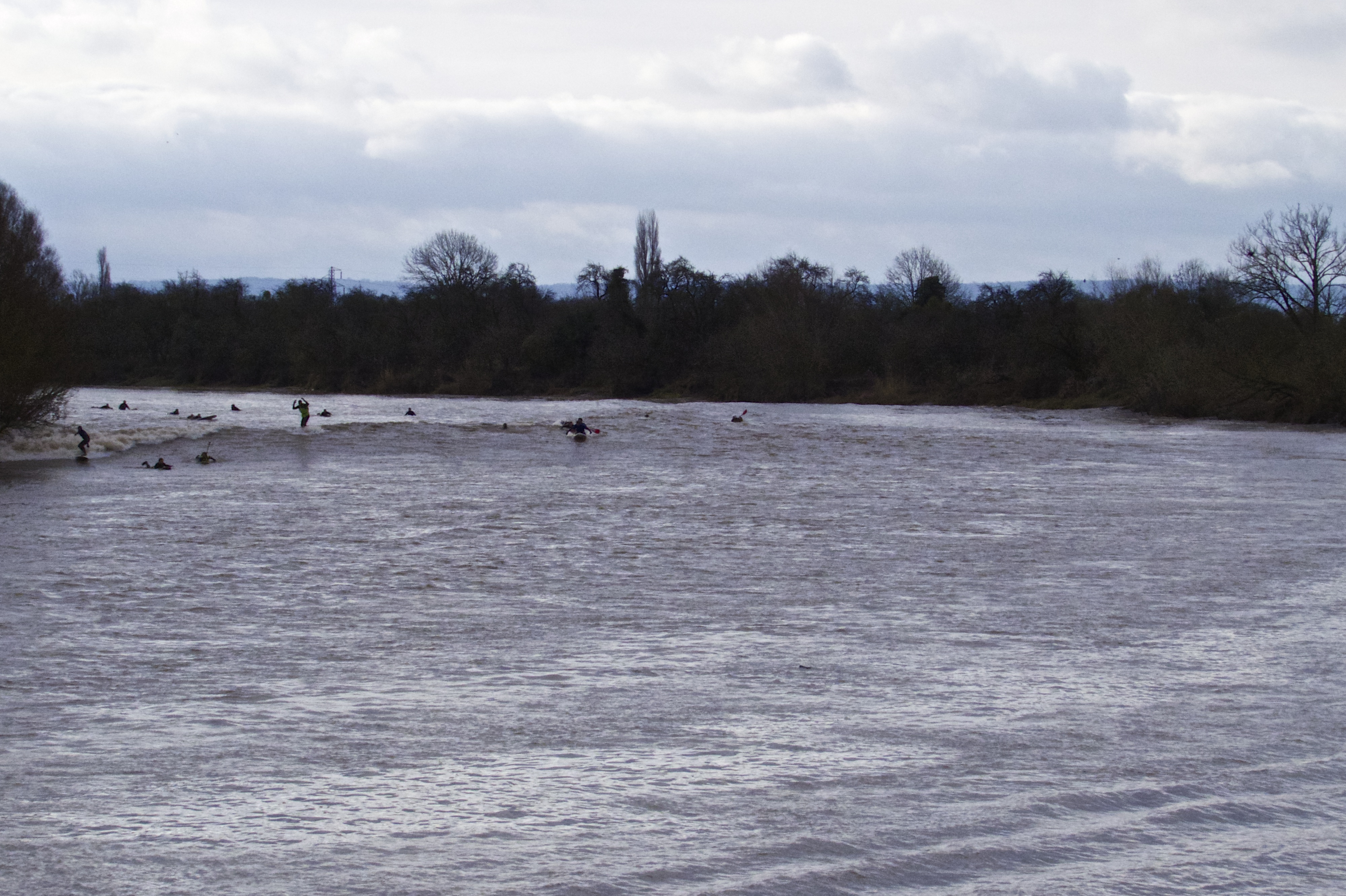 The entertainment was provided by the increasing number of surfers and canoeists plunging into the freezing cold waters ready to meet the wave. As it turned out only one of the them was able to surf the bore for any length of time. It did seem a lot of fuss to go to and then not do any surfing!