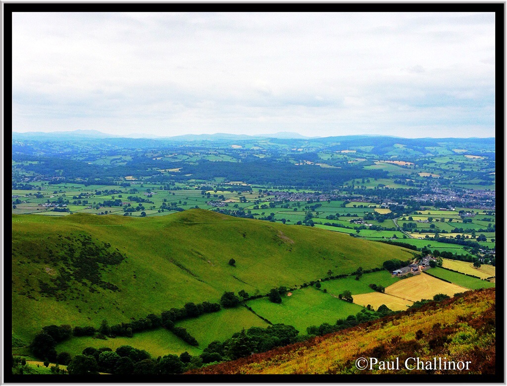 The Offa’s Dyke Path followed the western ridges most of the time and so we were given fantastic views over the Clwyd Valley, and out towards Cadair Idris and Snowdon. Although the sun wasn’t shining the views across this lush green valley are still beautiful.
