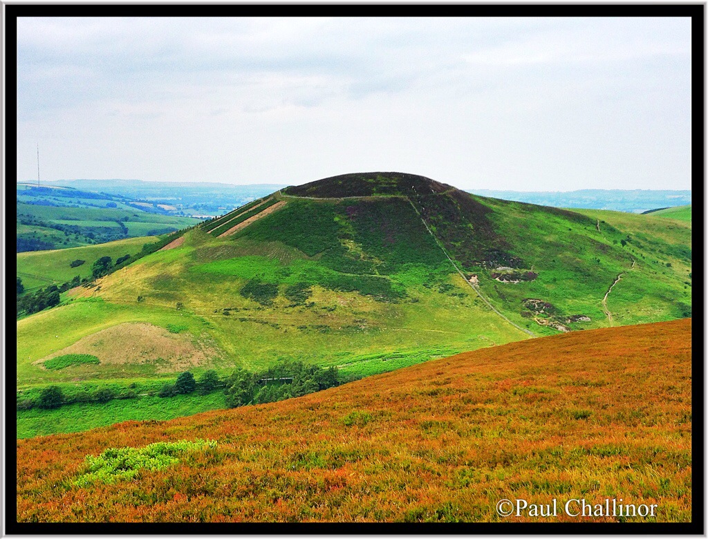 If yesterday was about Llans then today it’s all about Moels. There are lots of Moels in north East Wales, and is a common part of the name for many hills in this area. A Moel is a treeless or bald hill. We started off just underneath Moel y Waun (Waun is a moor) and then continued up and down for 14 miles, climbing up or around Moel y Plas (open space), Moel Llanfair (Chruch of St Mary – no church up here though), Moel Eithinen (gorse, not much gorse to day though), Moel Fammau (more on this hill later) and we finished rather gratefully at Moel Arthur (I’m sure you can work that one out yourself).