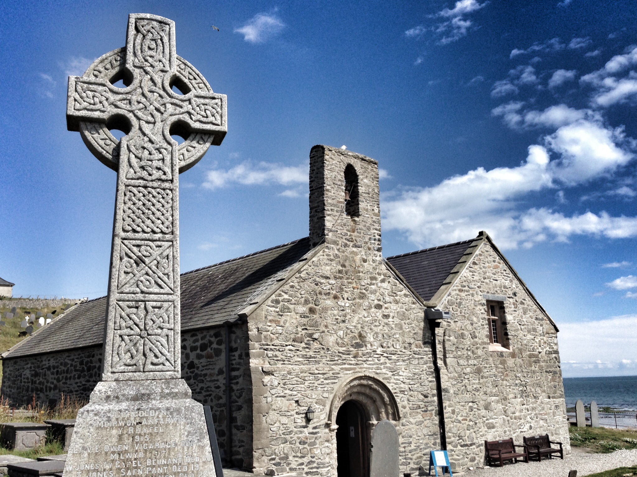 Cadfan, the warrior saint, who travelled from Brittany with Hywyn, moved on to Enlli, the island off the tip of the Llŷn peninsula. There he set up a religious house, later to be dedicated to St Mary. To both men these were places of their resurrection. Places where they felt God had called them to live, to pray and to die. The title ‘saint’ in the Celtic church was not a title of honour, but indicated that the person was a Christian.