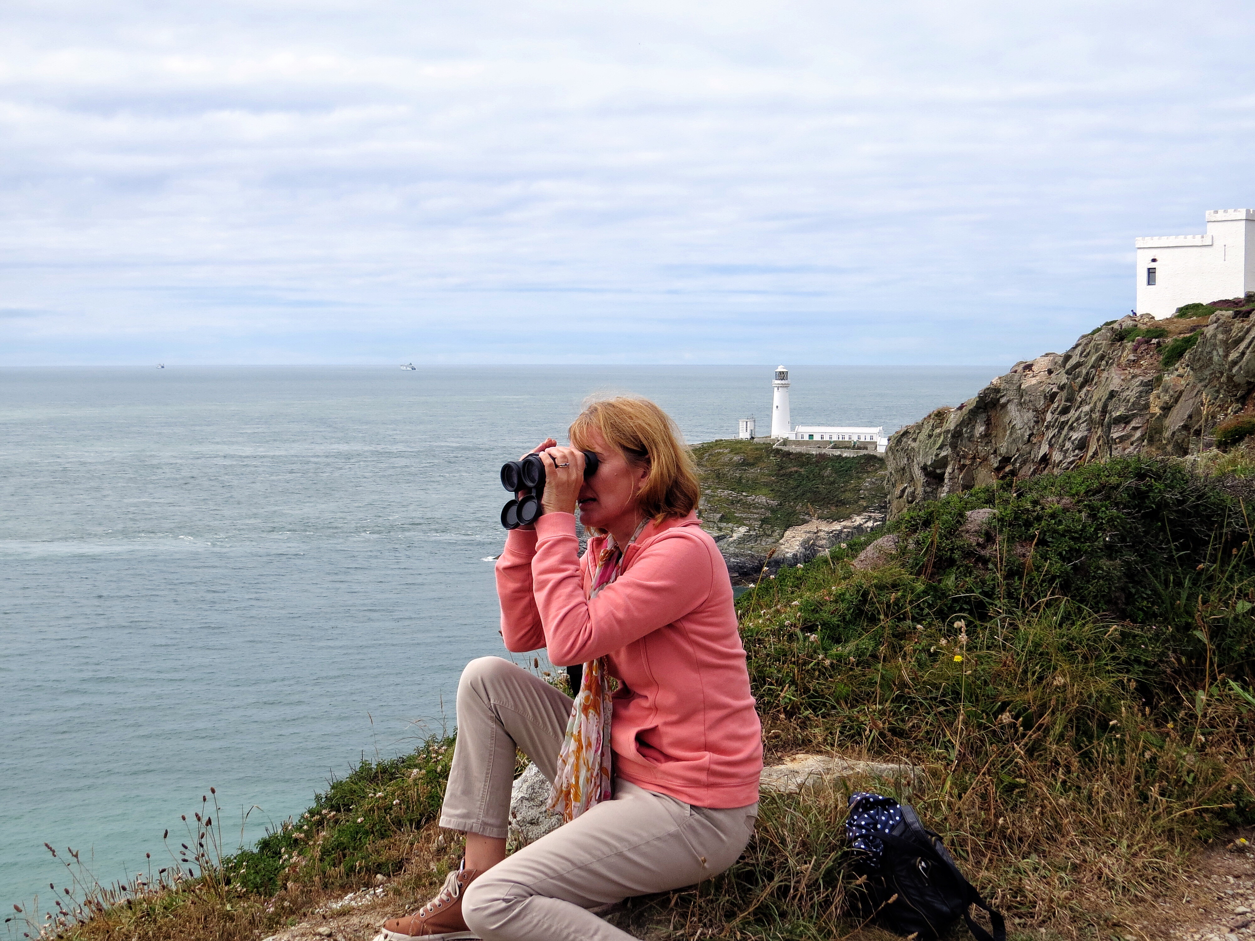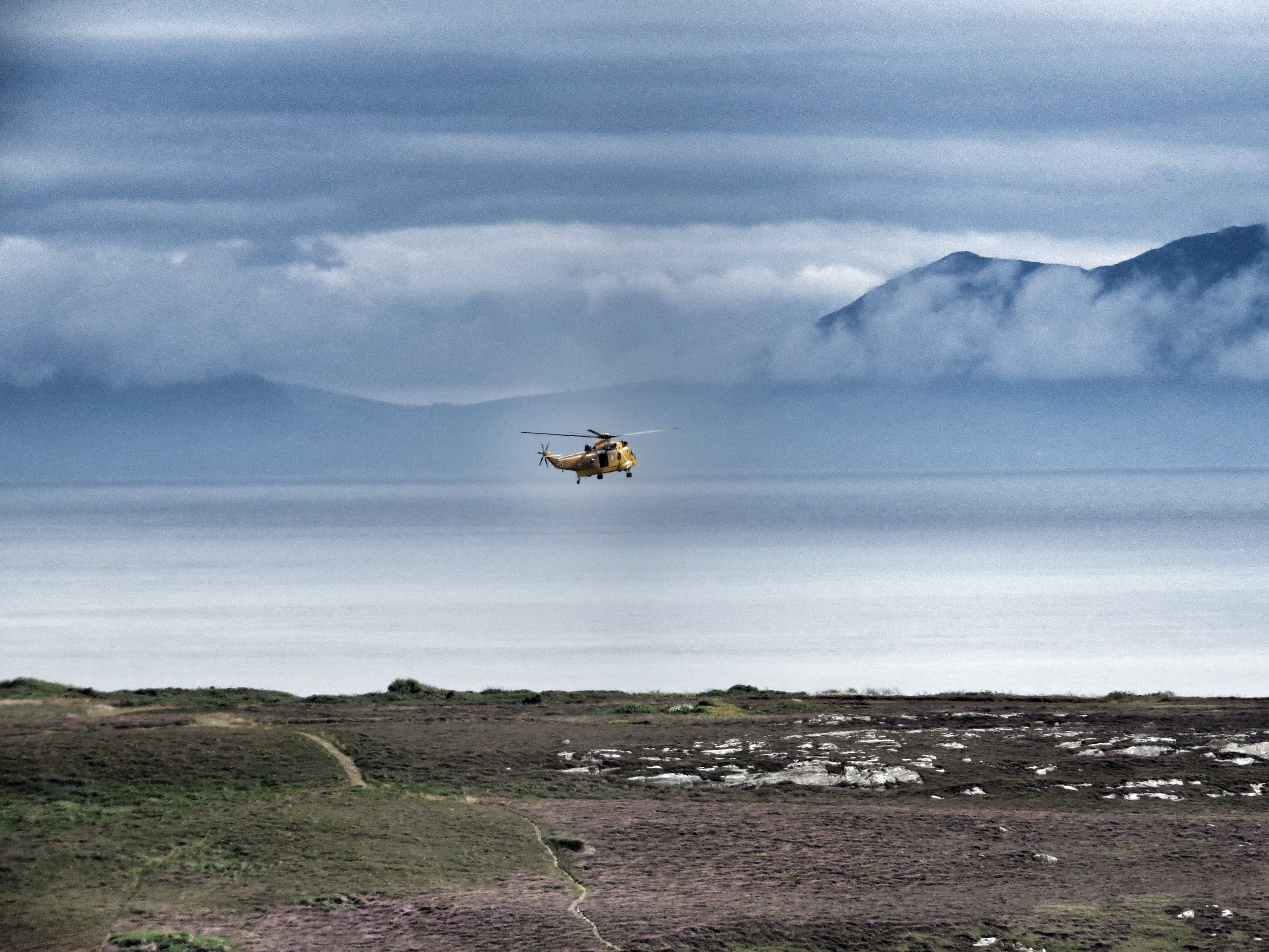 Concentrated bird watching.Then to a cry of “What’s that big yellow bird over there?” I had to put images of Sesame Street to one side and have a look to see the search and rescue helicopter from RAF Valley dangling a winch man over a small yacht in the bay. We’re not sure if it was an exercise or real rescue, but they were in the area for a considerable amount of time, and at one point flew off with the winch man still dangling underneath.