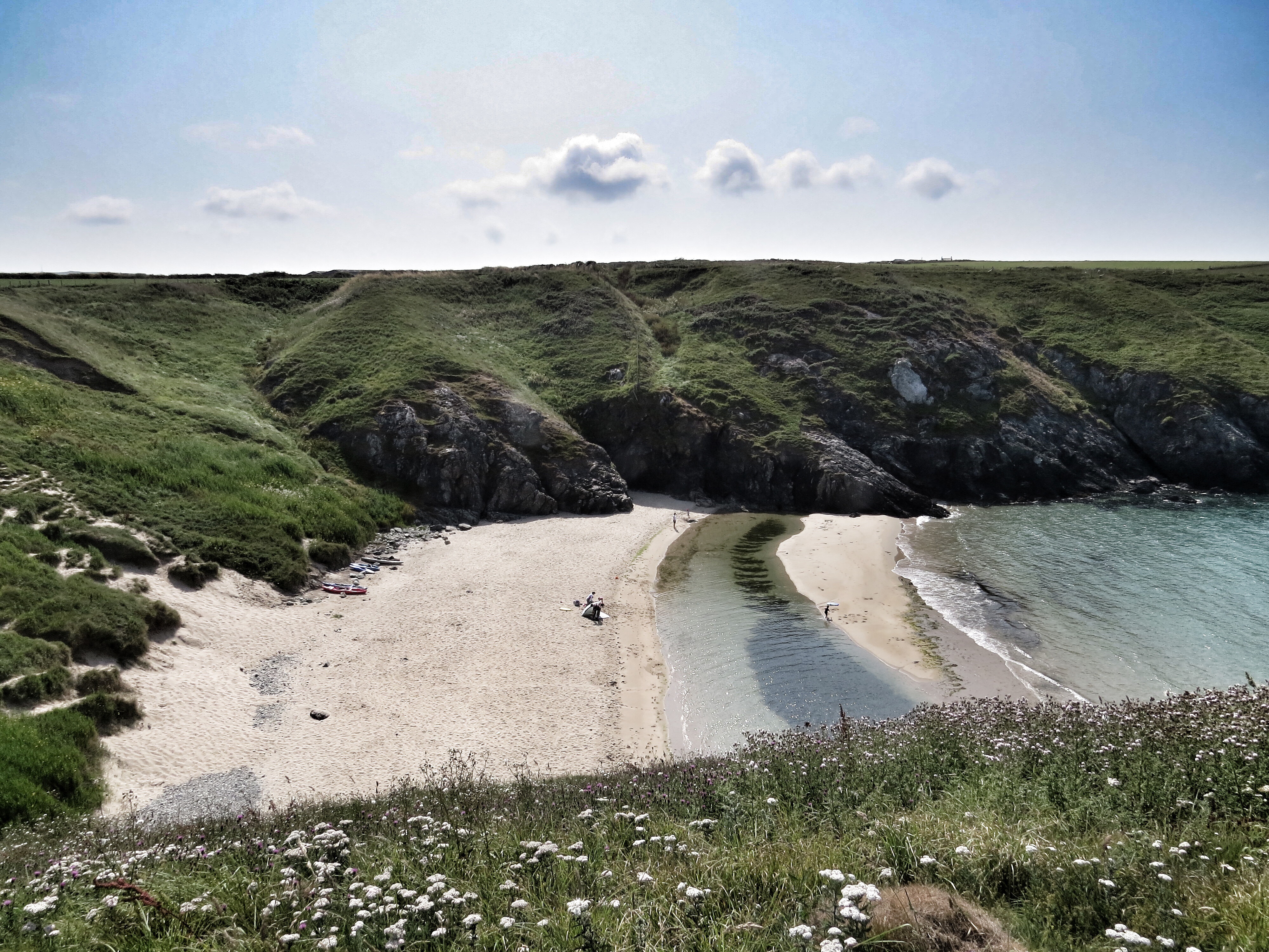 We then walked back towards Porth Iago. This is great little beach, and well sheltered from the breeze. By the time we had got back the beach had filled up, with kids have a great time on the sand.