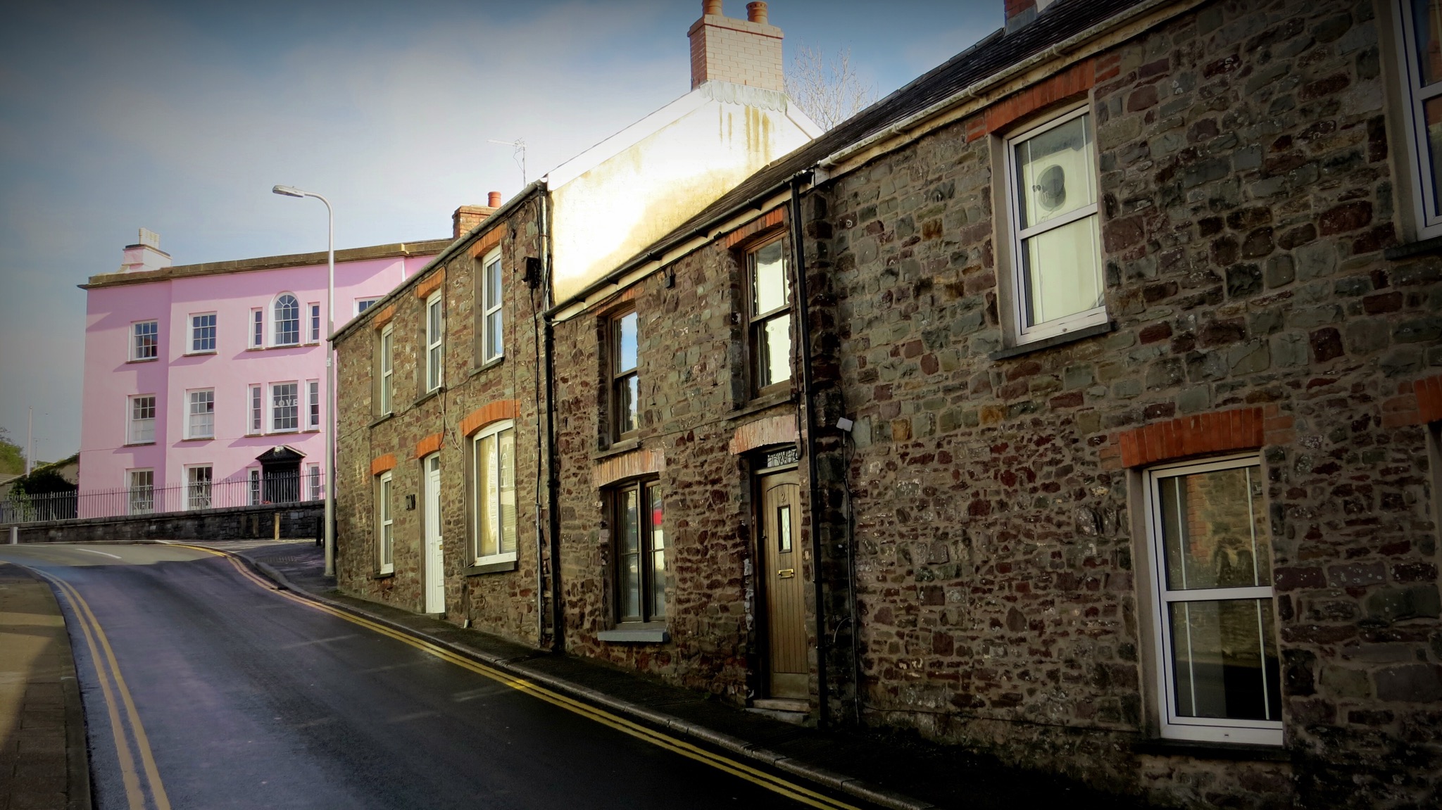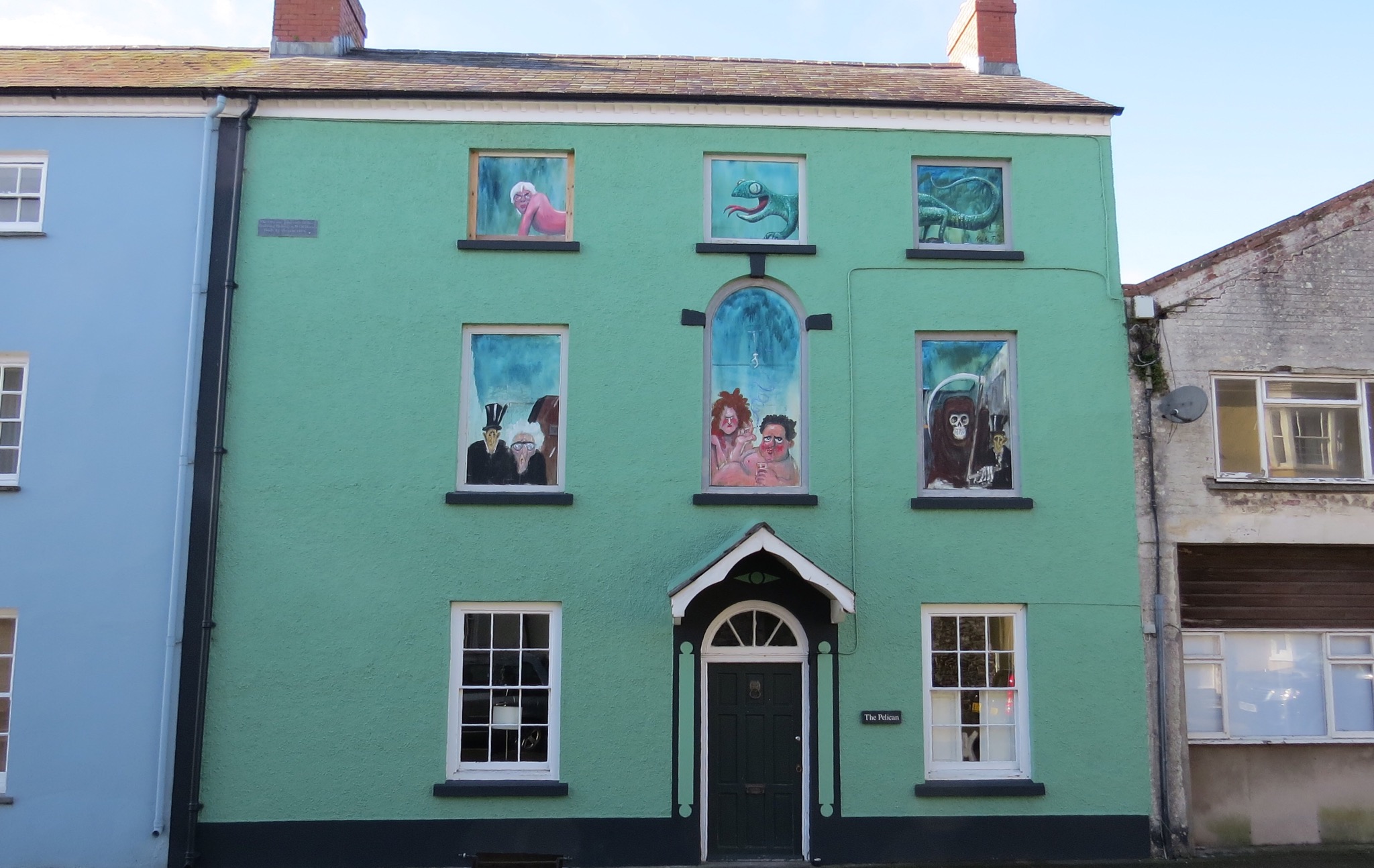 As well as the small cottages, the street are lined with fine Georgian town houses. One of which has had the windows painted with scenes including Dylan Thomas and wife Caitlin.