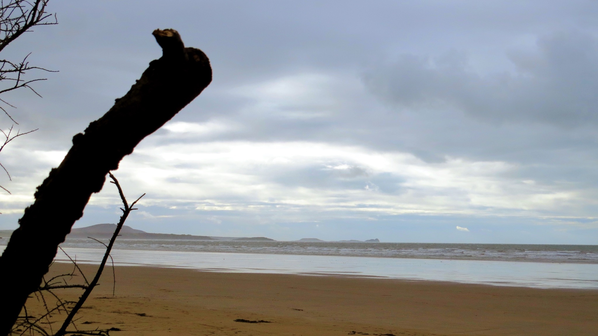 Along the beach there are clear views across the bay towards The Gower. It looks cold in the photo, and I have to admit it was the warmest of autumn mornings with the wind whipping up the waves. Aunty was well trussed up in coat, hat and gloves.
