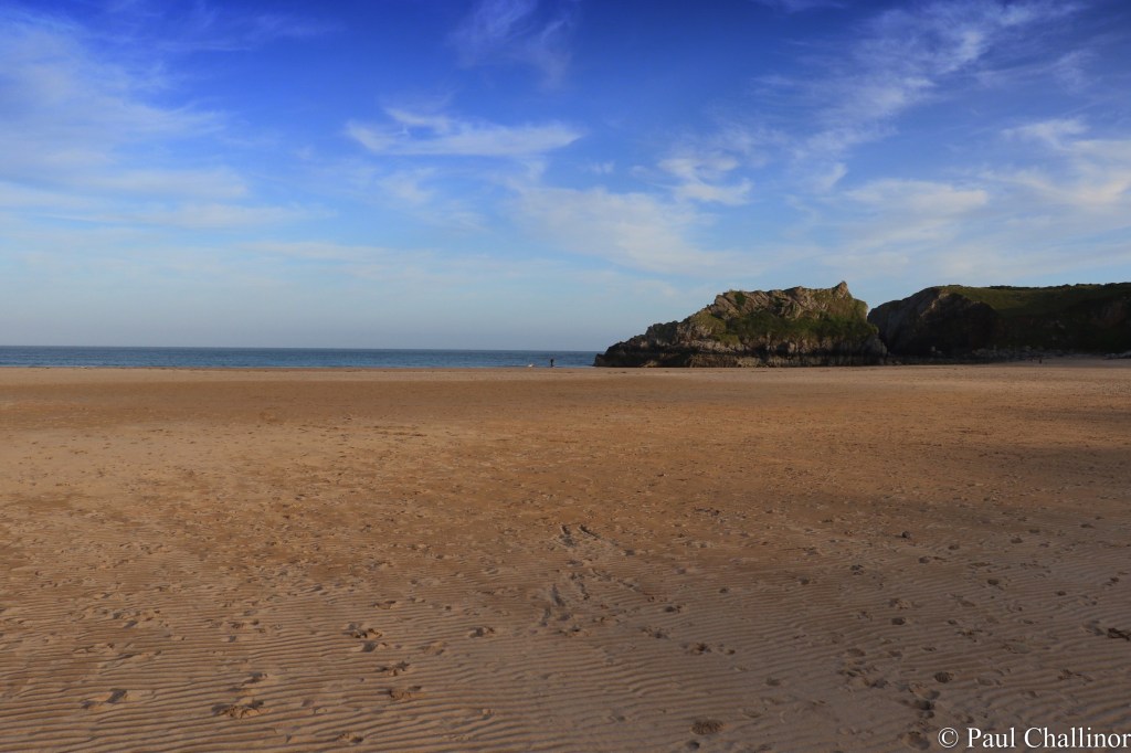 We followed the path through the woods down to Broad Haven where the stream trickes out of the final dam onto the sands. This is a great beach of soft sands and safe water. At 8pm it was pretty empty but there were still a few souls wandering about.