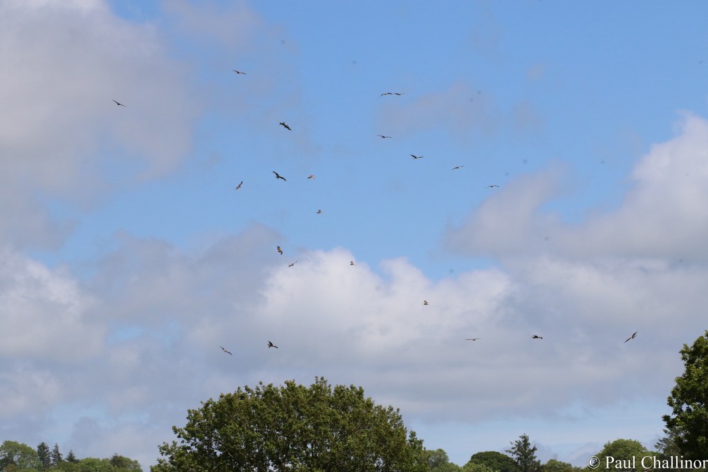 30 minutes before the three o’clock feeding time a few kites were already circling overhead. But then with 5 minutes to go the sky was full with about 30 or more kites waiting.
