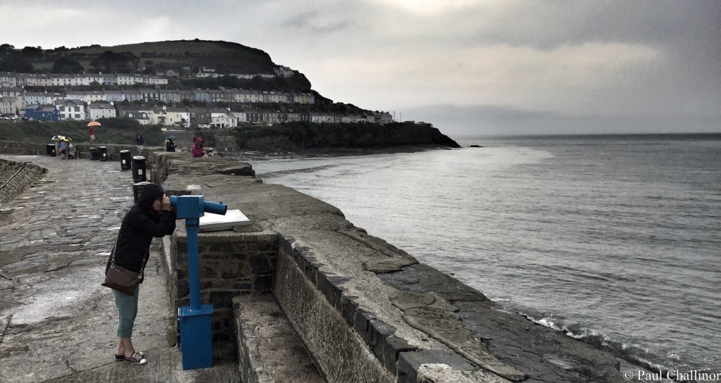 A couple of weekends ago we stayed in West Wales for a long weekend. Now the Cambrian Coast is a good spot for walking, sitting on beaches and chilling, but it is also a great place to go and try and see some Dolphins and seals. Now Aunty has a weak spot for dolphins and seals, getting excited whenever we see any. As we were staying near New Quay this was the natural place to start. According to the young lady from the Dolphin Watch they had been spotted each day from the harbour wall. We arrived late afternoon, to a grey sky and an equally grey sea? The one redeeming factor was it wasn’t raining. Yet! But this is Wales, and you have to be prepared.