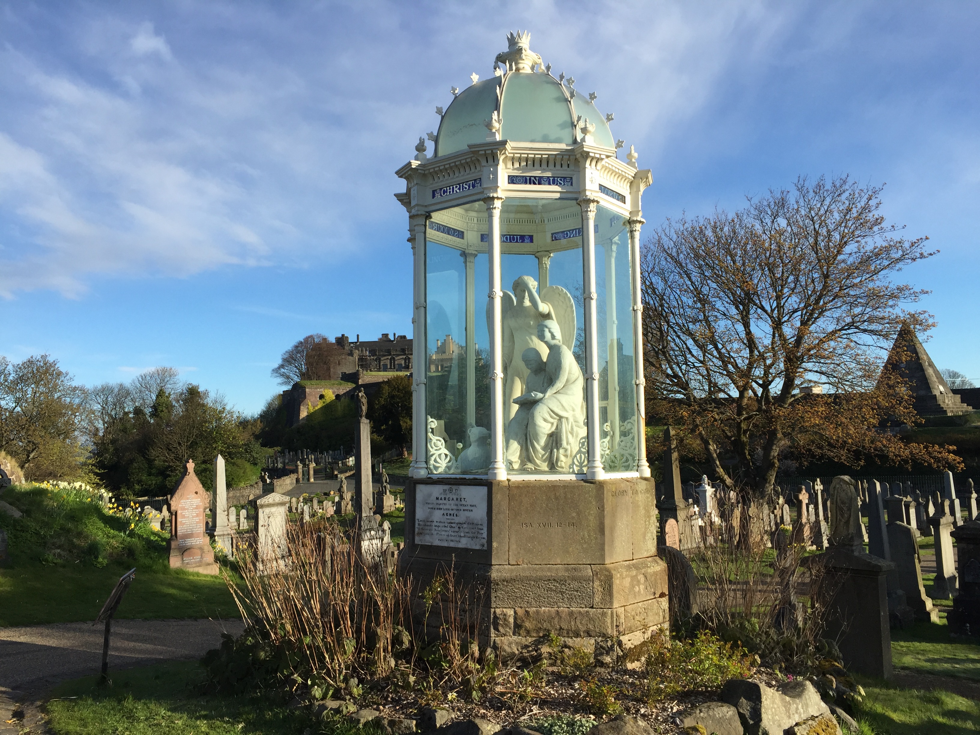 The church yard surrounding the cathedral also seems to surround thecastle. Scattered among the gravestones are surprising additions like this encased scenario. This represents one of the MaragetWilson, a hero of the Presbeterian faith, who was executed by crowing in the Solway Faith for refusing to deny her faith.