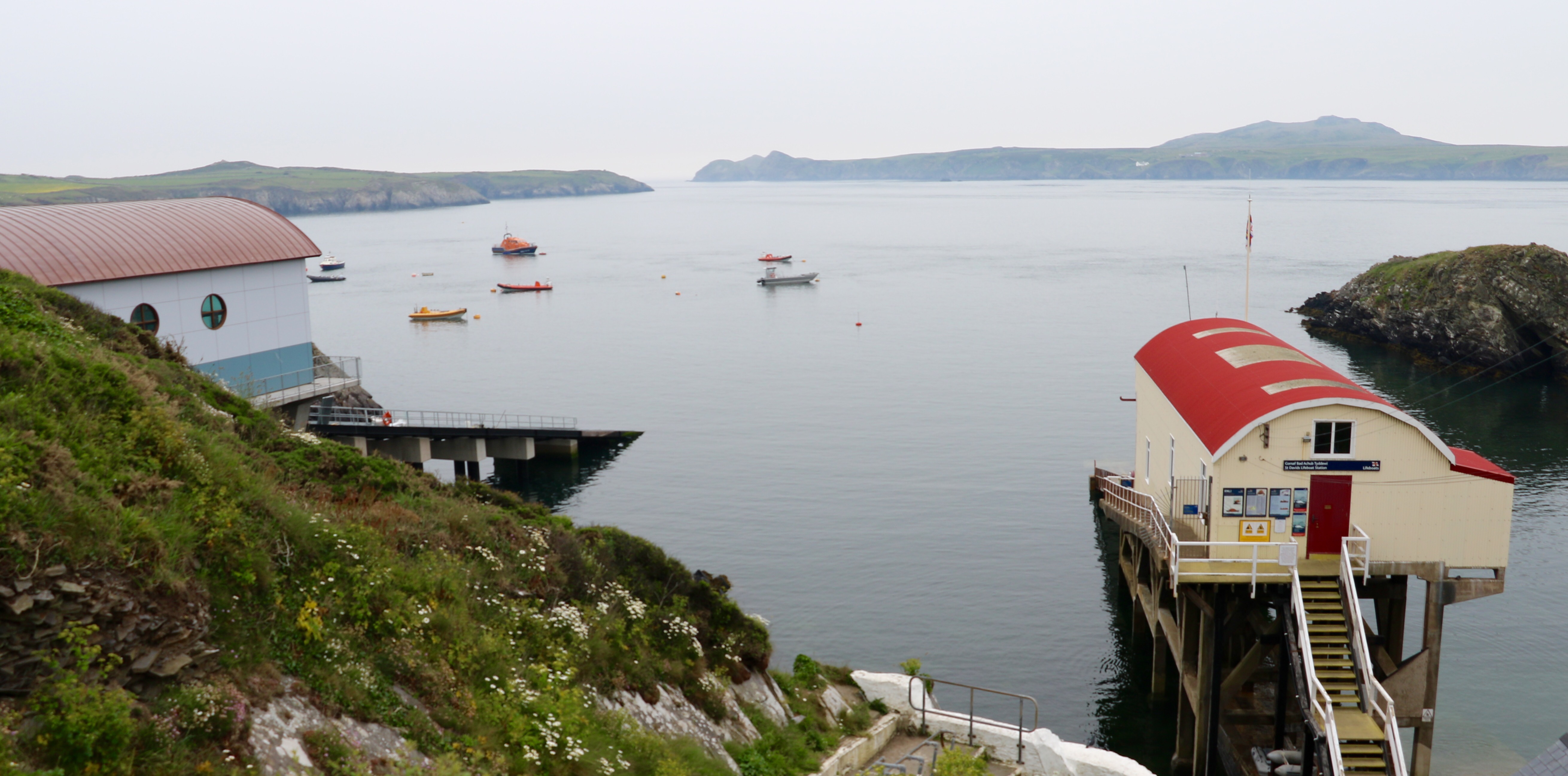 The lifeboat stations at St Justinian’s with Ramsey Island across the water.