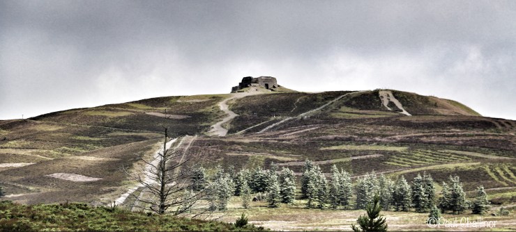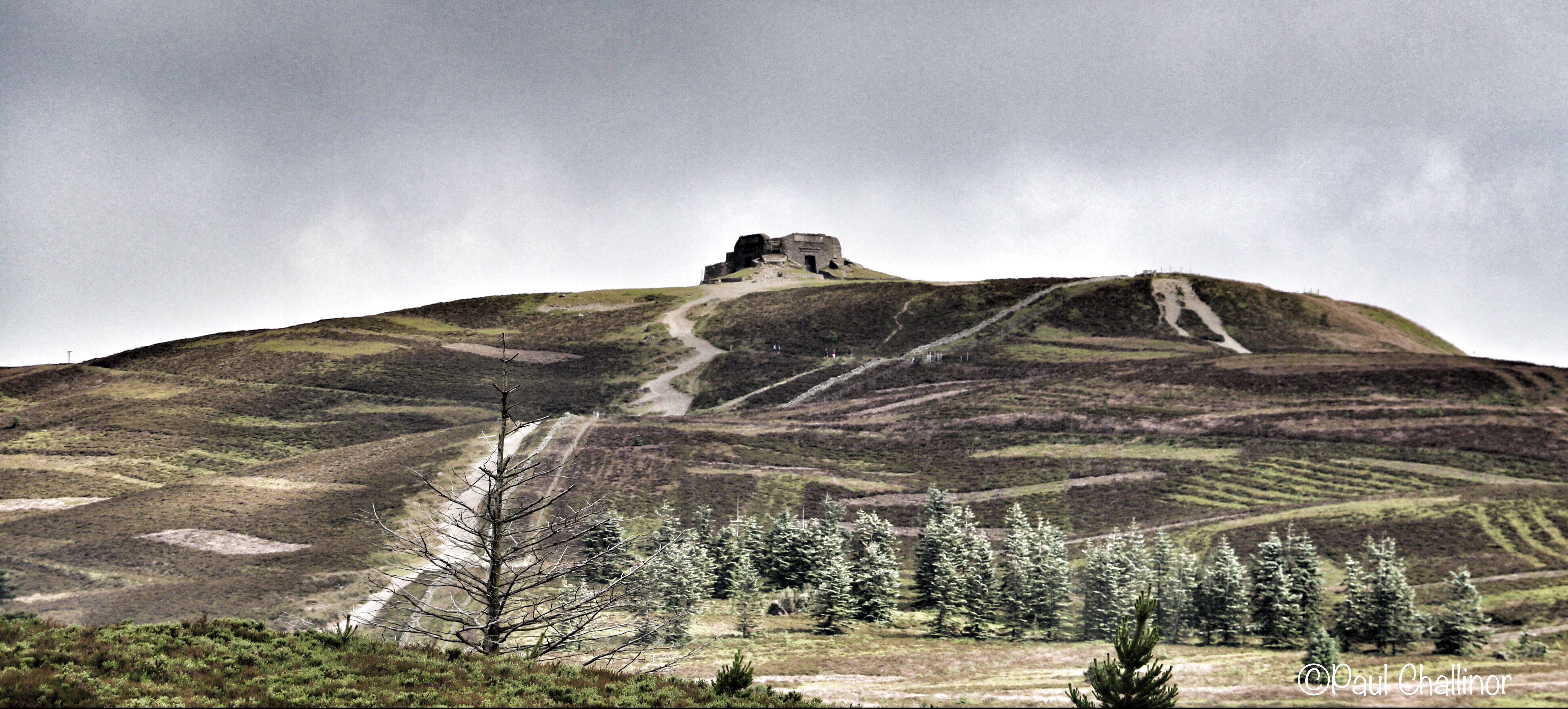 The calendar said that is was July, supposedly summer. But the view outside the window seemed to be suggesting the calendar was on the wrong page, or there was a misprint and it was November. OK it wasn’t raining (yet) hooray! But it was cold, not so good! The wind had been shaking the caravan during the night, definatly not so good! So what did we decide to do? Climb a hill of course! Armed with hot coffee we headed for the hills. Well one hill to be exact, Moel Fammau. Not a big hill, not a difficult climb, but the views from the top can be fantastic – on a good day that is. And this was not a very good day as it turned out, making it especially challenging to take any good photographs because of the very poor light.