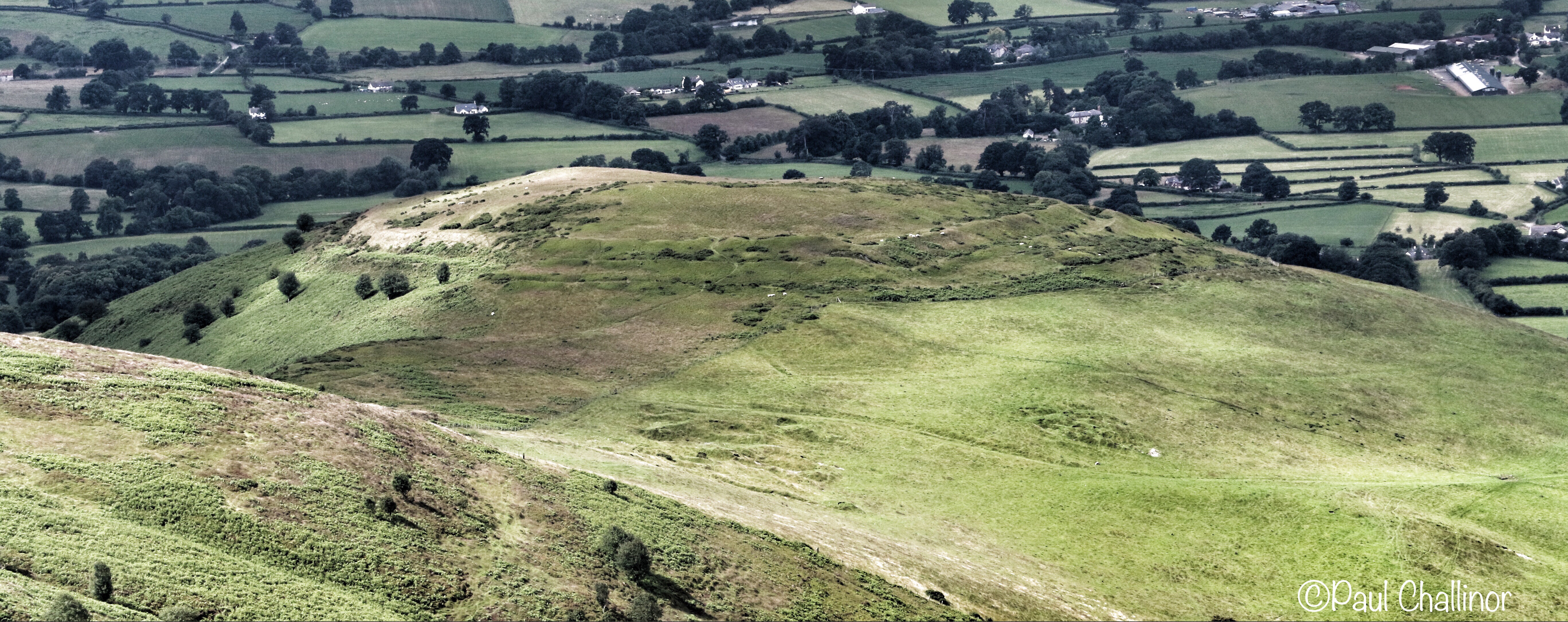 This area is rich in ancient archeology. Just above where we started our walk was the Iron Age fort on the top of Foel Fenlli, and then just below Moel Famau is another one, Moel y Gaer. These Iron Age forts remain enigmatic, and their function is not fully understood. It is possible that they may have had a defensive function in some cases, but in others it is difficult to understand. In some areas they are very close together, as here. The two forts are only 2 miles apart and there are others nearby. Defensive maybe, but almost certainly there was a social focus to their position in the landscape.