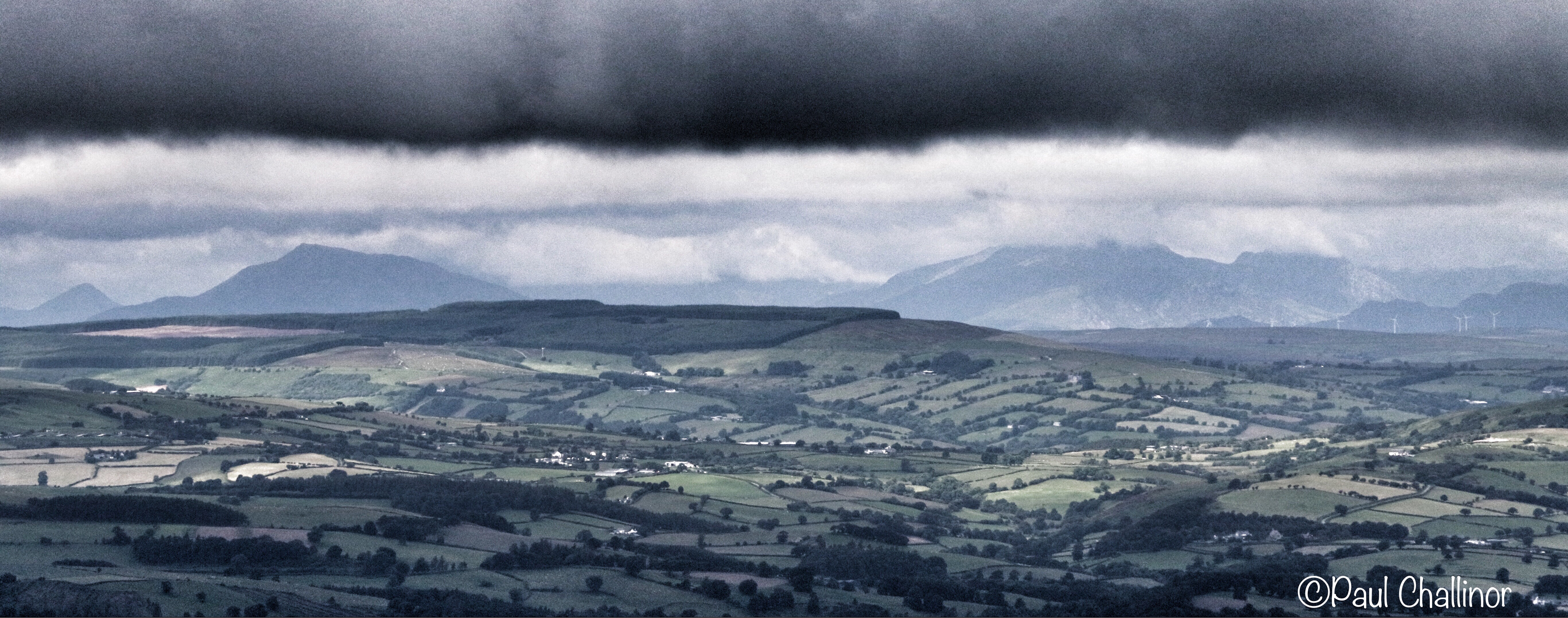 The views from the top are good, and there were occasions when the clouds cleared briefly. Looking west you can see Cader Idris, Snowdon and the Carneddau Range. East looks down onto England and the wide, flat expanse of the Cheshire Plain.