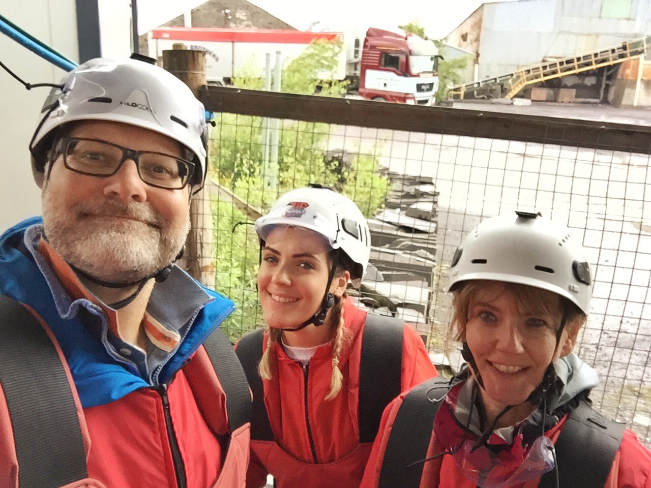 So what else is there to do with the Challmonkmoore annual get together – we had to try fly for a mile at 100mph along a little wire 500 foot above hard rock! The whole day needed organisation. And there’s one thing we are all,good at and that is organising things – but not necessarily together. Before we even got anywhere near a wire we had to have a briefing. What we were allowed to do – not much! What we were not allowed to do – a lot! Then much to Number One Daughter’s chagrine we had to dress up in shapeless one piece jump suits and be fitted with harnesses. Even for a fashion clueless Charlie like me I could see this as not a good look.