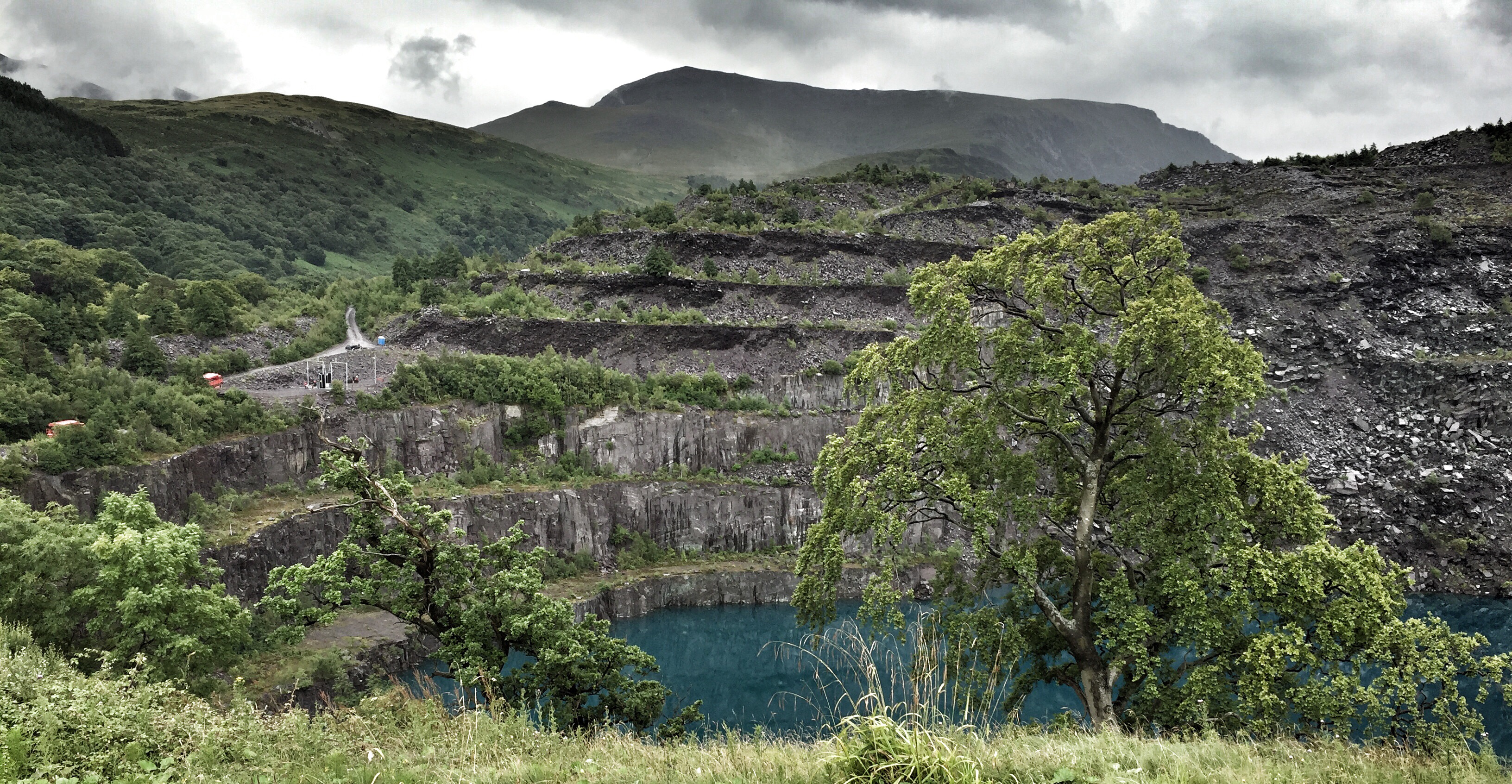 South Wales is known for coal mining. North Wales is known for slate quarries. Everywhere you go in North West Wales you will almost certainly find an abandoned slate quarry. Some never became commercial. But others made their owners huge fortunes, and the aftermath of the quarries are difficult to miss. The main centres were Blaenau Festiniog, Corris and Bethesda. But other existed, smaller and now almost forgotten. But the fact remains there where hundreds of quarries and slate mines scattered across the region. Now all are now closed, but the hollowed out maintains and scarred mountain sides remain. A testimony to the labour, sweat, tears and often blood of the quarry men making fortunes for the few and hardship for the many. These industrial ruins have to survive somehow, and now a number of these are Tolkiensien landscapes are now visitor centres interpreting the last, but also provide others with an adventurous spirit with an adrenalin fix. None more so than Bethesda Quarry, home to the longest zip wire ride in Europe.