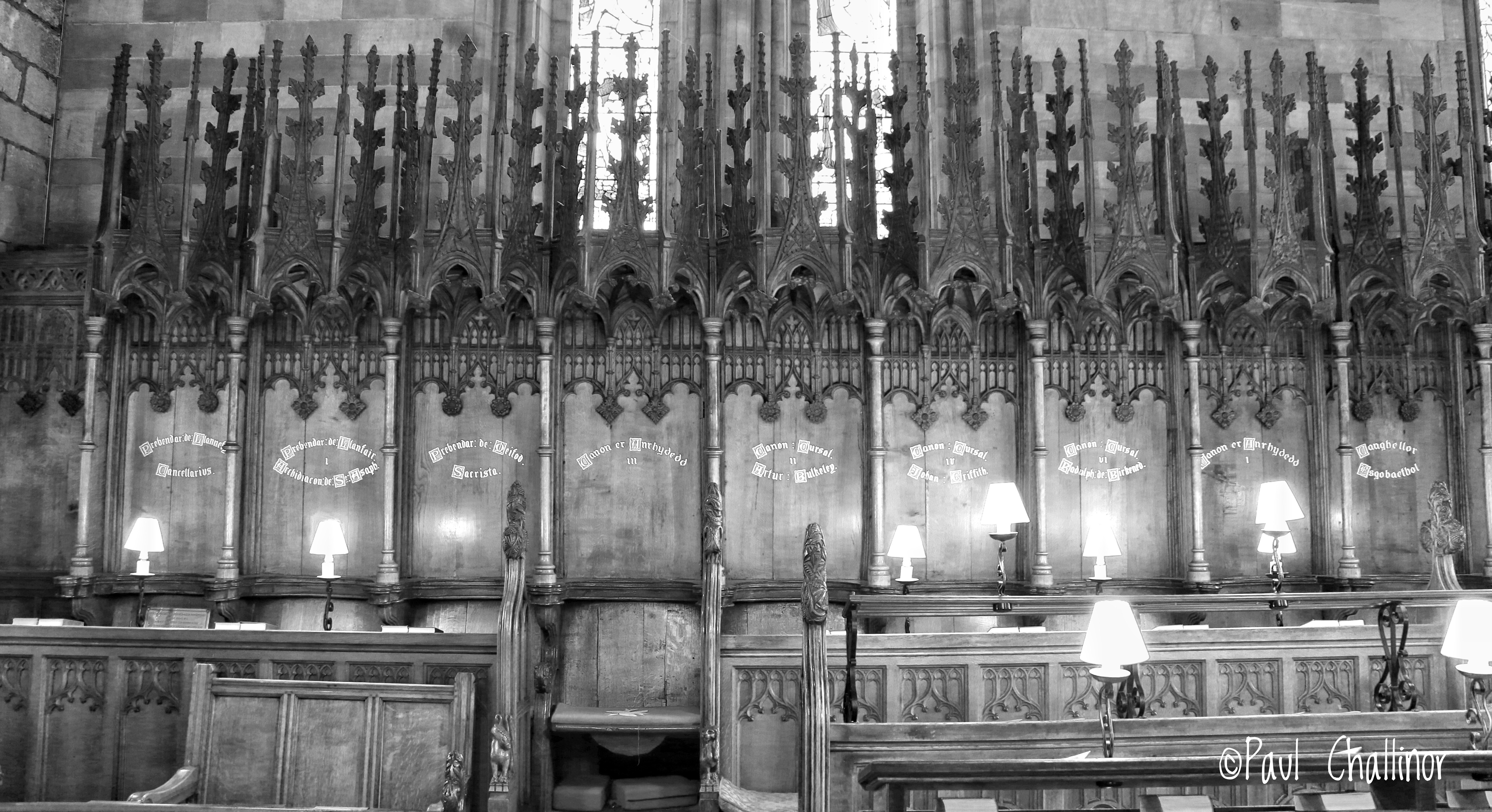 The Cathedral is small and it is only 182 feet long, smaller for example than the church of Valle Crucis. It could be argued that geographically this was not the best place to build a major place of religion because St Asaph has suffered from its proximity to the main invasion route into North Wales. During the turbulent period after 1066 when the Normans repeatedly invaded Wales trying to gain control the town was hit time and again. The present building was begun in about 1239, but was destroyed by Henry II troops in 1245. It was attacked and burnt by Edward I’s English soldiers in 1282; substantially rebuilt between 1284 and 1381. Then in 1402 it was the Welsh who burnt it down, during by Owain Glyndwr’s rebellion. Two hundred and fifty years later, during the Civil War period the building was used to house farm animals – pigs, cattle and horses. Although repaired in the late 15th century what we see today is essentially only the shell from this period because the building was remodelled by the Victorian architect Gilbert Scott in 1867 -75.