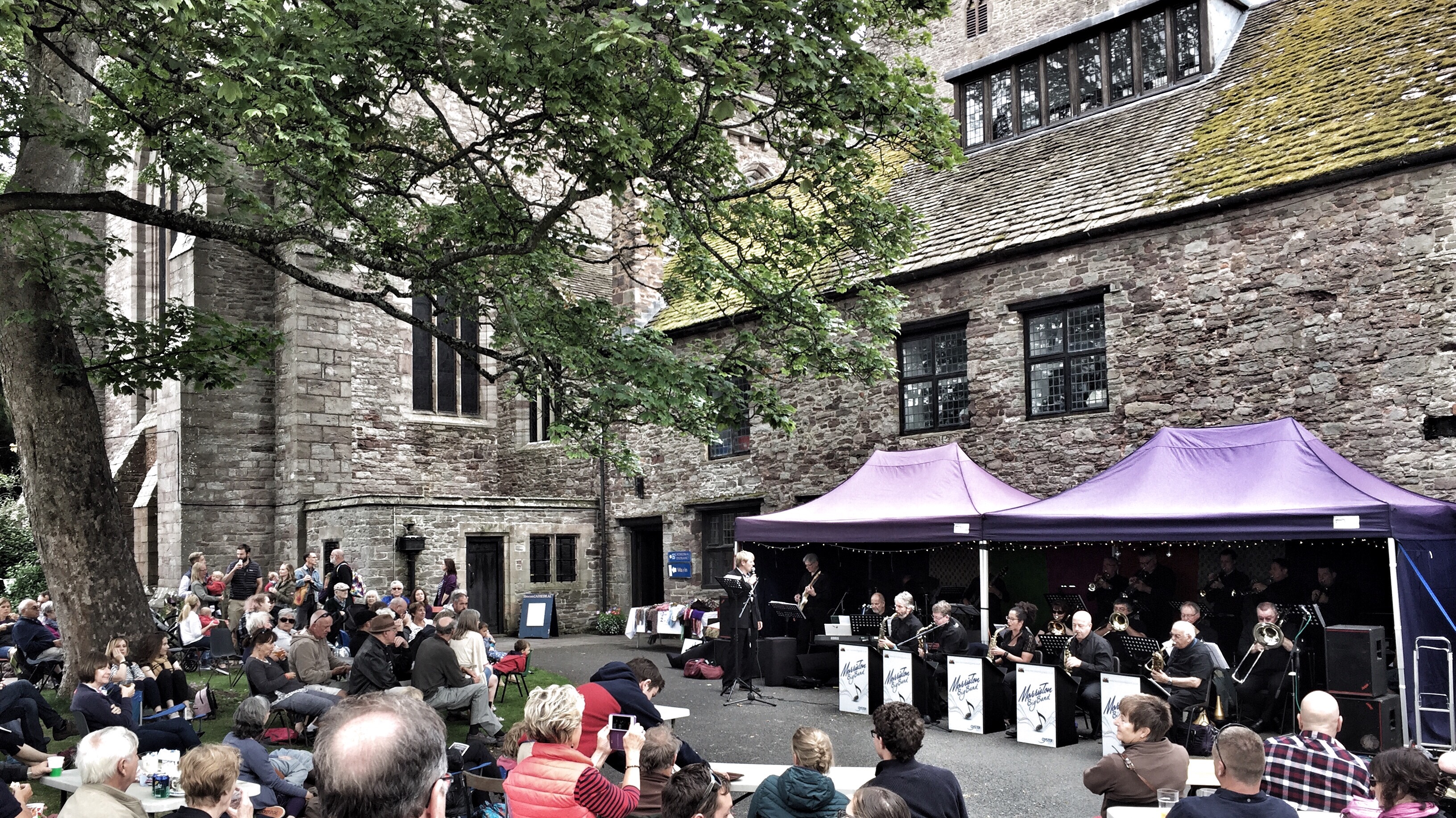 Not only does it have history, a fantastic view of the Brecon Beacons, a canal but also a cathedral. One thing we do. well in Wales is having Hugh cathedrals in small towns hidden from the world. But we weren’t here for teh history this time but to sample Brecon Jazz Festival. This has been a long time coming, as we’ve been saying for the past 25 plus years “We must go the the festival this year”, but never made it. We stayed just outside Brecon, and the walk along the canal into the town set the scene well.