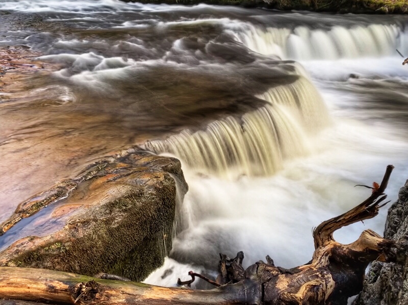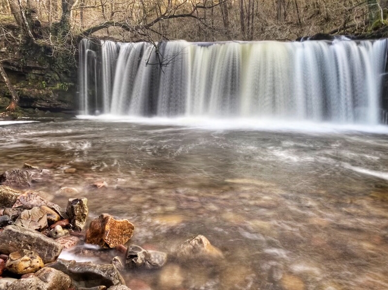 It’s been raining a lot around here so far this December, and there’s a lot of water around. But Aunty spotted a break in the clouds and smelt the sun and so we escaped the Christmas build up and headed for the hills. Water plays a central part in many Welsh tales, many tinged with tragedy and touched by love lost. These tales can be linked to unexpected places, no more so than in South Wales near the heartlands of the old industrial and mining country. Gwladus was one of the many daughters of the 5th King Brycheinog. Gwladus fell in love with Einion, but because of his less than aristocratic station in society, Brycheiniog would not allow the two to marry. Distraught that her love was denied Gwladus threw herself into the river and drowned. A water fall then appeared at the site of the tragedy. Aunty and I have been here before but after all the rain this past week Afon Pyrddin was in full spate and Sgwd Gwladus was much more spectacular than the last time we were here.