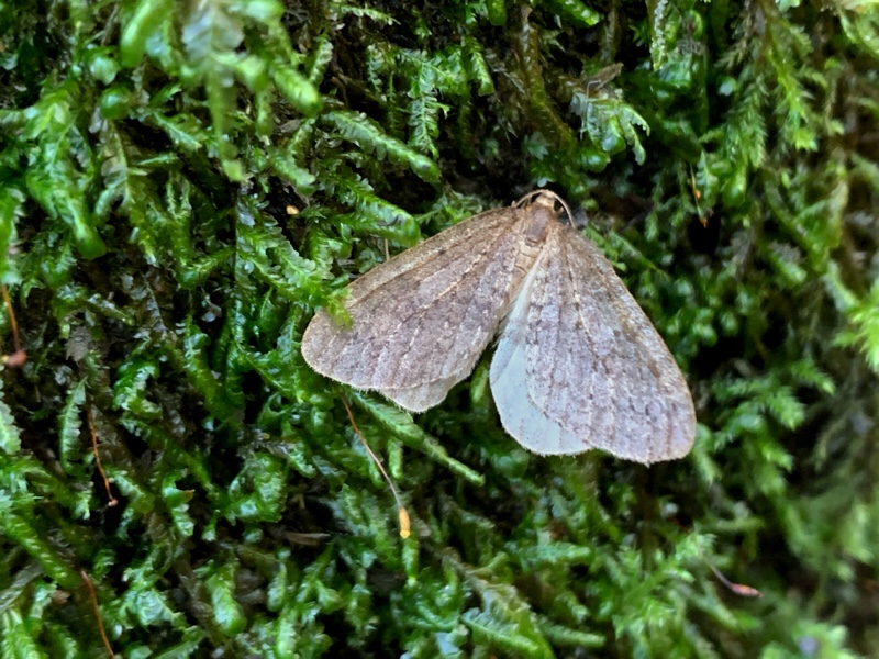 Until recently I used to think that moths were only on the wing from Spring through to Autumn, but they can be found all year round, though there are fewer species at this time of year. One of which is the Winter Moth, Operophtera brumata. I found one at on the moss covered base of a tree trunk. This is a male, the female is wingless. A little wet and worn, but clearly ready to carry on the next generation.