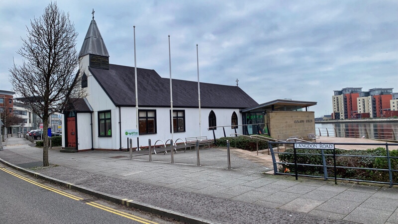 So when we finally got to Swansea the days walk started at the Prince of Wales Dock. This was opened on the 18th of October, 1881 when Prince Edward (no surprise here if I told you he was the Prince of Wales) pulled a ceremonial gold and jewelled lever to open the main sluice, allowing water to flood into the new dock. However as trade declined in the later part of the 20th Century it was finally closed to shipping. It has now been developed to provide housing and is a pleasant part of the city close to the new University Campus. On the quayside stands a white wooden Norwegian Church, very similar to the one at Cardiff. This was originally built in Newport Docks in the 1890s, but was moved to Swansea docks in 1909 to serve the Norwegian sailors who came in on the ships bringing in pine for pit props, and then returning with coal. A neat circular trade route if ever there was one. However as the trade to the docks declined in volume so did the congregation decline, until in 1966 the Norwegian authorities ordered it to be closed. However, following a campaign by Mr. Eric Benneche, a Norwegian living in Pontardulais, who offered to take over the running of the mission and, with the aid of Swansea’s local Norwegian community, the church remained in use for another thirty two years until its eventual closure in 1998. In 2004 the church was moved to it’s present position behind J Shed on the quay of the Prince of Wales Dock.