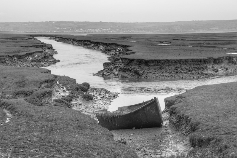 The path hugs the landward coast allowing wide vistas across the salt marsh to the north. At time very slippery it’s an easy path to follow, and in many places seems to have once been a road with cobbles and stones clearly defining the way. The path passes underneath Weobly Castle sitting perched high on a bluff with panoramic views over the marsh and Loughar Estuary.