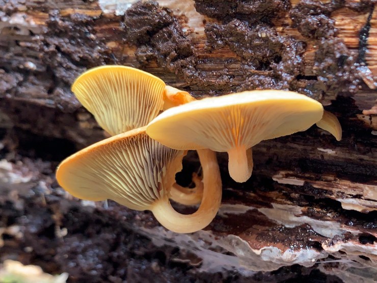 It might be Sulphur Tuft – Hypholoma fasiculare, but I’m not convinced.