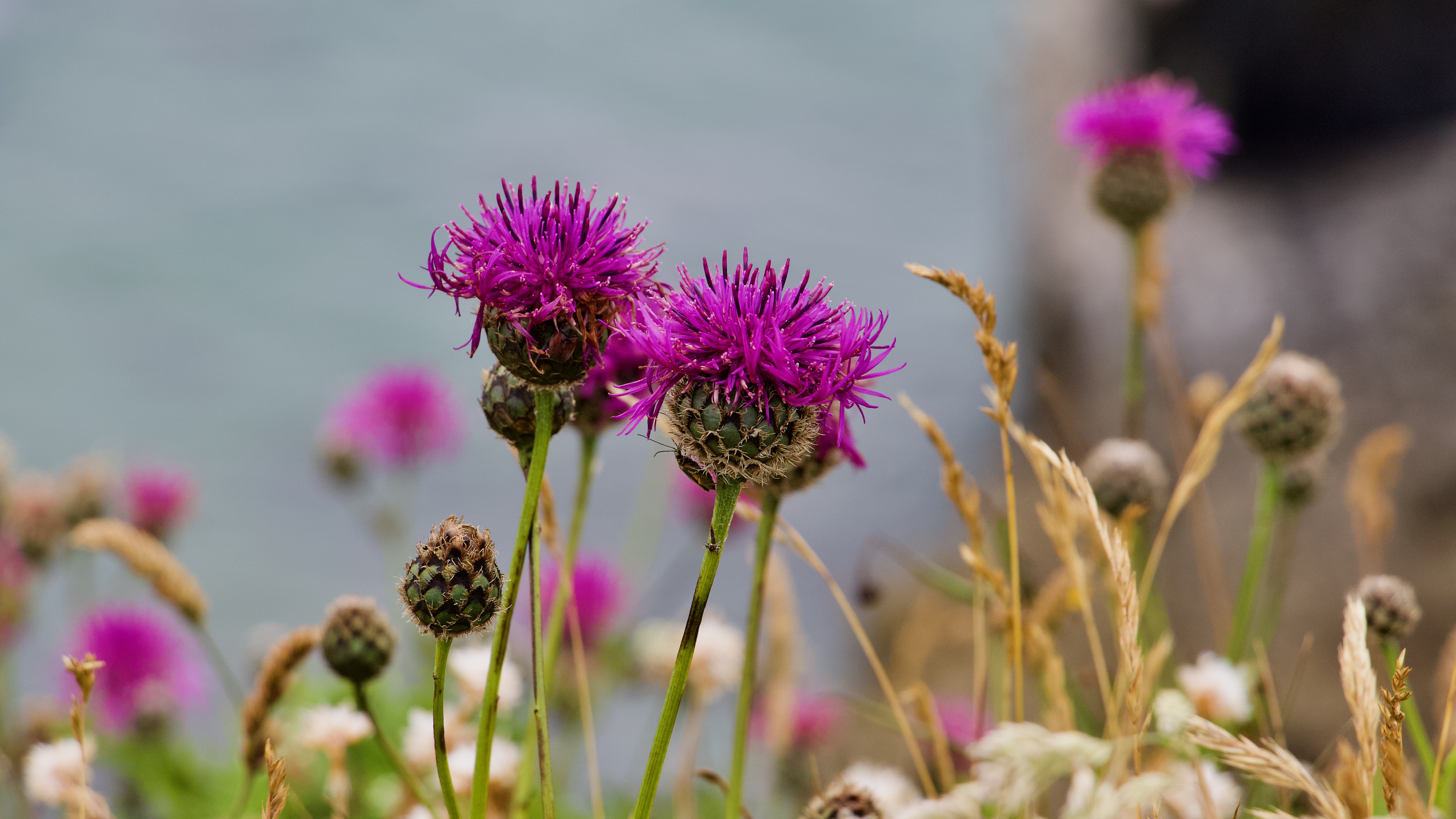 I love walking along the cliffs here in the late spring and summer. Because of the activity from the military this area is not heavily farmed, it would be difficult for the tractors to dodge the tanks. Cattle are raised on areas of the range, but the fields are not heavily stocked and are moved around the range reducing the risk of over grazing. This allows and encourages a wide diversity of wildlife to develop. As we walked towards St Govan’s Head I was able to identify more than 35 different flowers, and there were many more that I didn’t bother with or Aunty would have become frustrated with me stopping all the time.