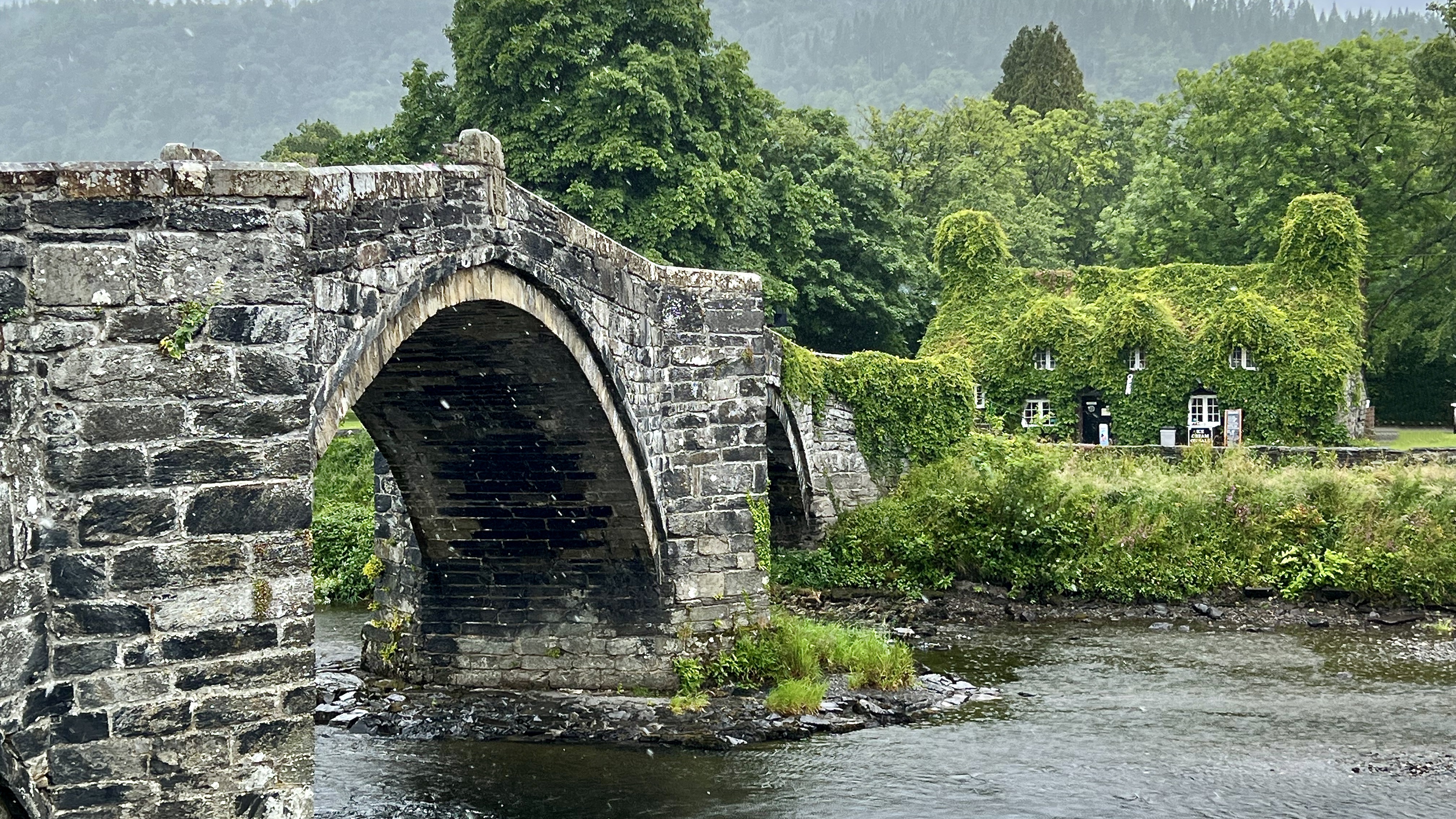 This is not your usual looking tea shop, but one that is full of character and “tweeness”, if there is such a word. Ty Hwnt I’r Bont is old. However, I have found various dates with the oldest suggesting it was originally built as early as 1465 1. As such it may be older than Pont Fawr (big Bridge) behind which it hides. We do know that Pont Fawr was built in 1634 to replace a previous bridge that was deemed unsafe. The costs for the bridge was covered by subscription from the people of Sir Caernarfon on the West Bank, and Denbighshire on the east bank. The bridge didn’t last long because the stone masons had Laid the key stones to the central arch upside down. This went unnoticed until the central arch collapsed. Opps!