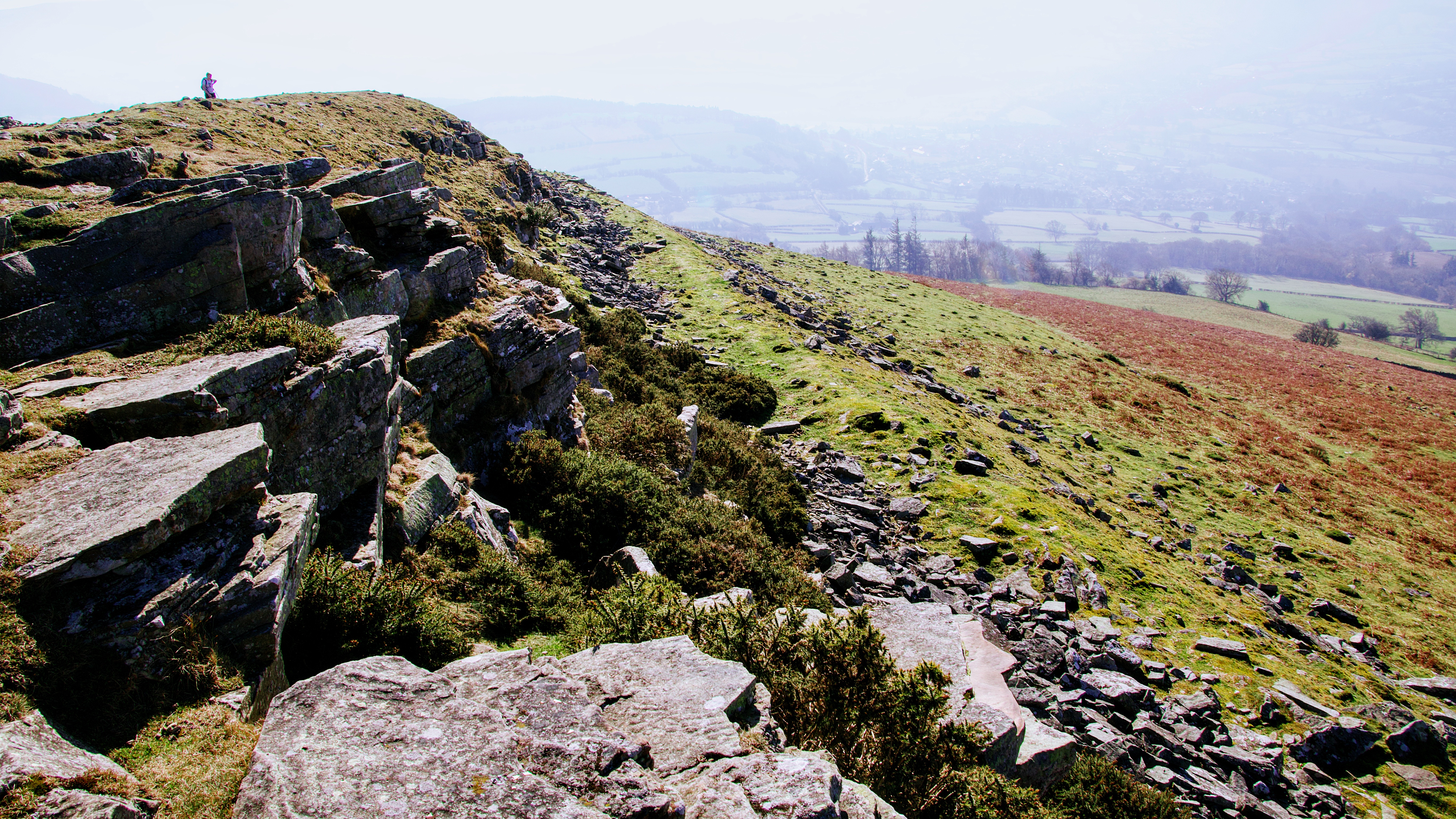 Towering over Crickhowell is Pen Cerrig Calch (701m), a terminal spur of one the Black Mountain ridges and it is here the original builders decided that the southern flank of would be a good place to place a hill fort more than 2000 years ago. Today the fattened area of the fort has given rise to the name of Table Mountain, 451 m above sea level. It is a bit of a blow walking up the steep slopes to the slopes but worth it. Once in the fort we were afforded superb views across the Usk Valley all the way through to the Brecon Beacons, giving an appreciation of the why the fort was perhaps sited here, giving visibility of the surrounding area for the incumbents, but also providing a clear visual clue to those in the valley as to the power base that the fort represents.