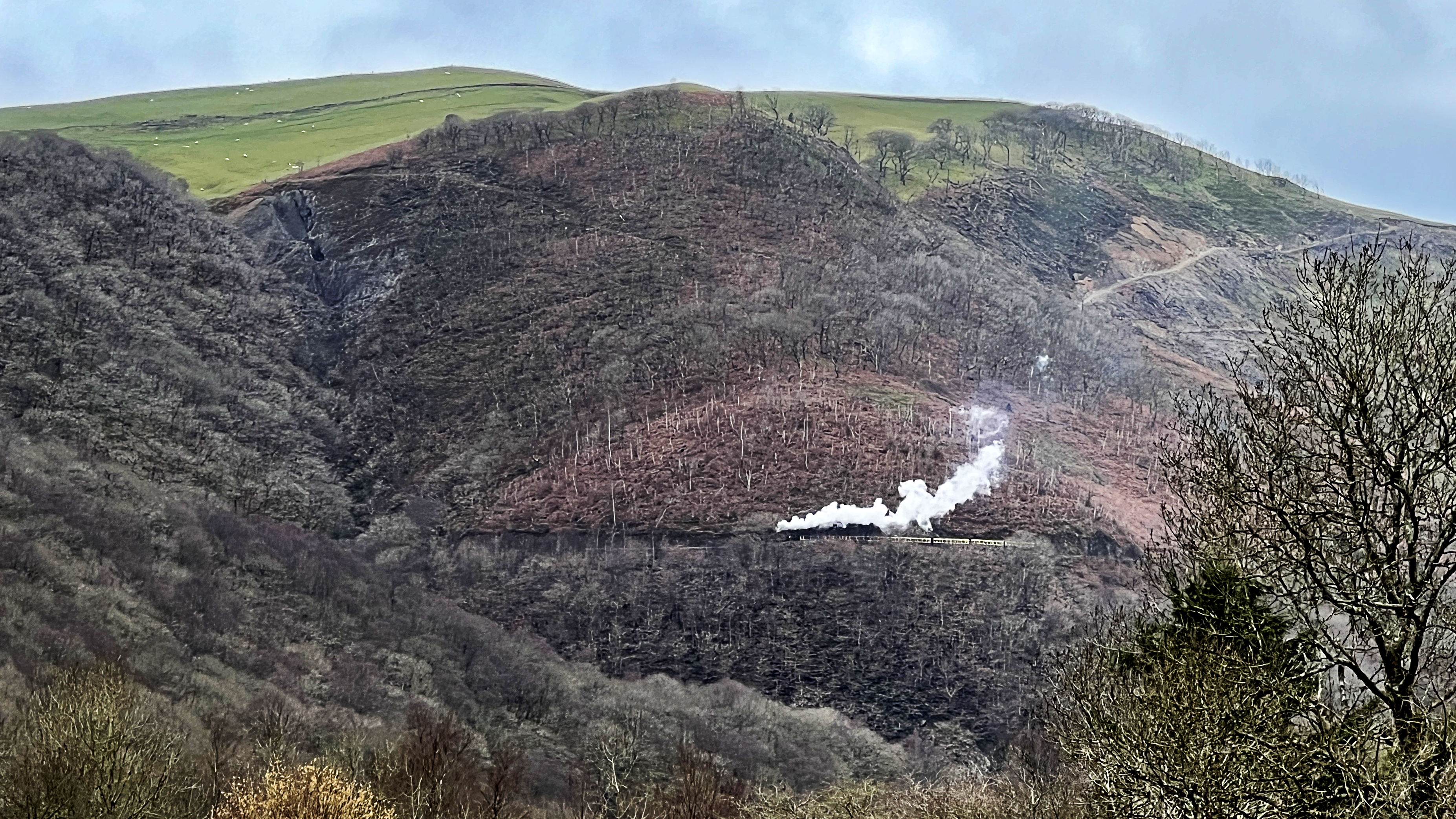 As we descended deeper down the steep valley we watched the first train of the season steaming along the track from Aberystwyth to Pontarfynach. The narrow gauge railway was built in 1902 to transport lead and zinc ore from the mines in the Rheidol Valley to the coast at Aberystwyth. The railway was originally owned by the lead mining company and was built to a gauge of 1ft 11¾in (603 mm). Narrow gauge railways were a cheaper and quicker option to build in the narrow steep valleys of Wales. Unusually for a narrow gauge railway in Wales it was taken over in 1912 by the Great Western Railway. Today it’s a popular tourist attraction and well worth a ride.. In 1904 the line was extended to Pontarfynach in 1904, and the railway became known for its scenic route through the beautiful Rheidol Valley. However, the decline of the mining industry led to a decrease in traffic, and the line was closed in 1968. Fortunately, a group of volunteers formed the Rheidol Railway Preservation Society and began the task of restoring the railway as a tourist attraction. The first train ran on the newly restored line in 1971, and since then, the railway has gone from strength to strength.