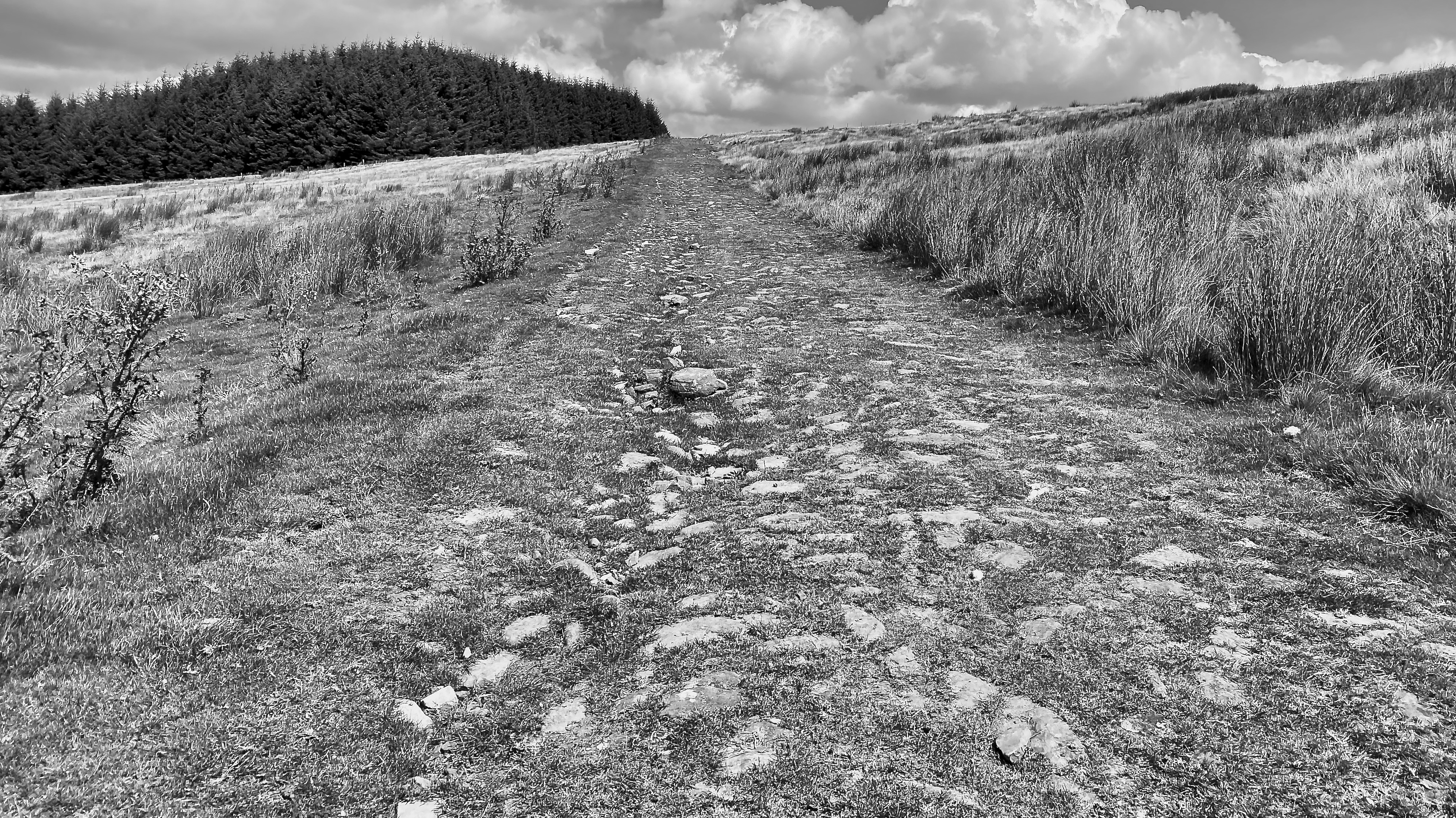 Standing on an old metalled track just north of Ystradfellte and looking around it is easy to feel isolated and long way from anywhere. Surrounded by moorland stretching into the distance on one side and modern conifer plantations on the other and Fan Llia dominating the skyline to the north, it is easy to imaging that it was always like this. But the sensation of quiet isolation today was probably not the experience of people who lived and travelled here in the past. This is evidenced by the fact Aunty and I are standing on the route on a Roman Road, Sarn Helen, laid down in the first century linking the forts at Neath to the south and Brecon Gaer to the north, before continuing to the north coast of Wales. The road is named after the fourth-century princess turned saint, Elen Luyddog, according to the Mabinogion, a collection of Welsh myths which may or may not have a basis in fact. However, the historical accuracy of this attribution is easy to dispute, as the Romans established their roads in Britain in the first century, long before Saint Elen could have influenced her husband Macsen Wledig to undertake it’s construction.