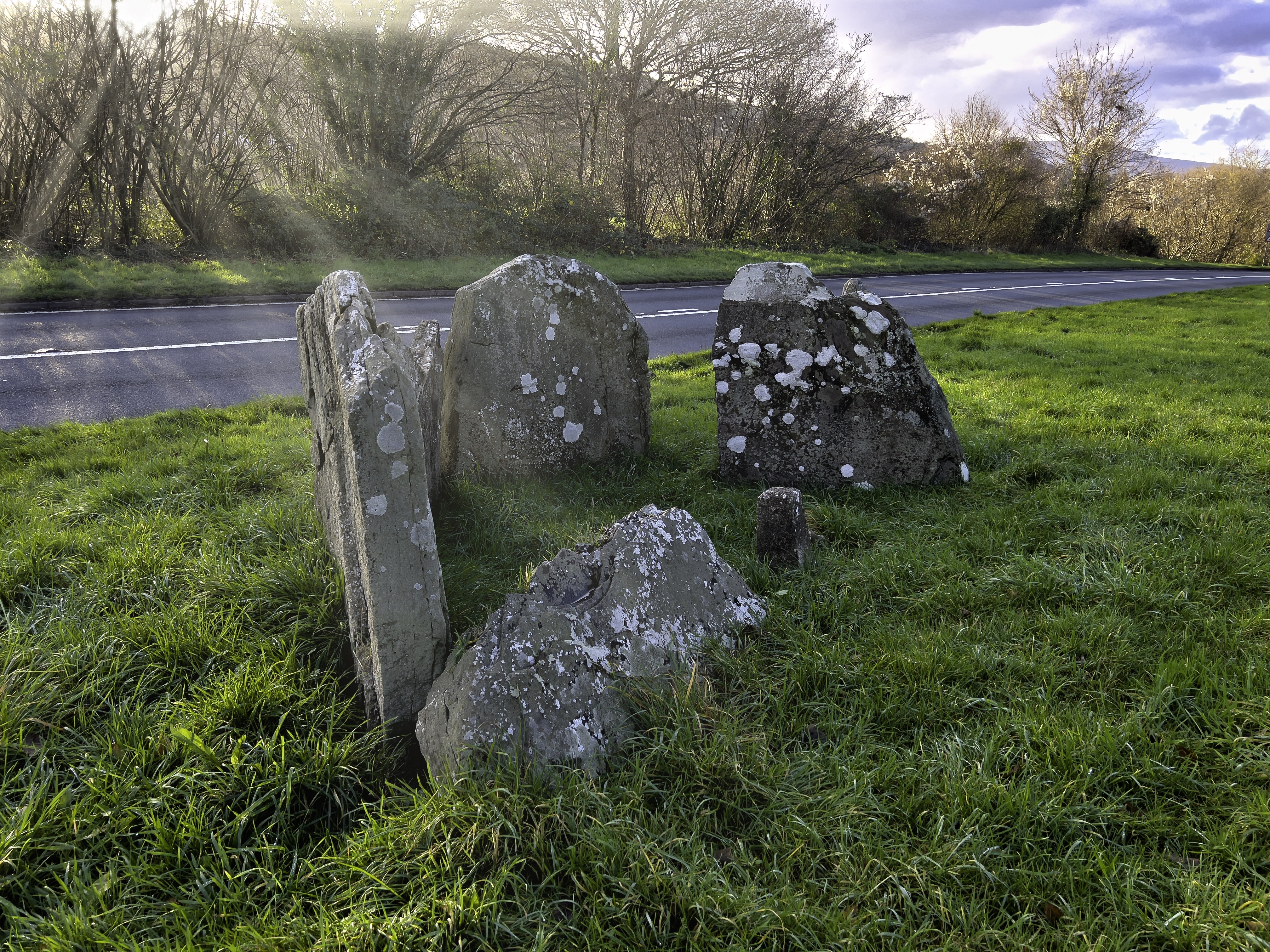 Auntie and I were driving back from Tretower Court when I decided it was time to stop and have a look at this enigmatic group of stones. This did involve a hand brake turn off the busy road into a very small lay-by next to the entrance into the nearby hotel Gritted teeth and burning brakes took us into the tiny space and a slight expletive from Auntie I jumped out of the car to have a look.