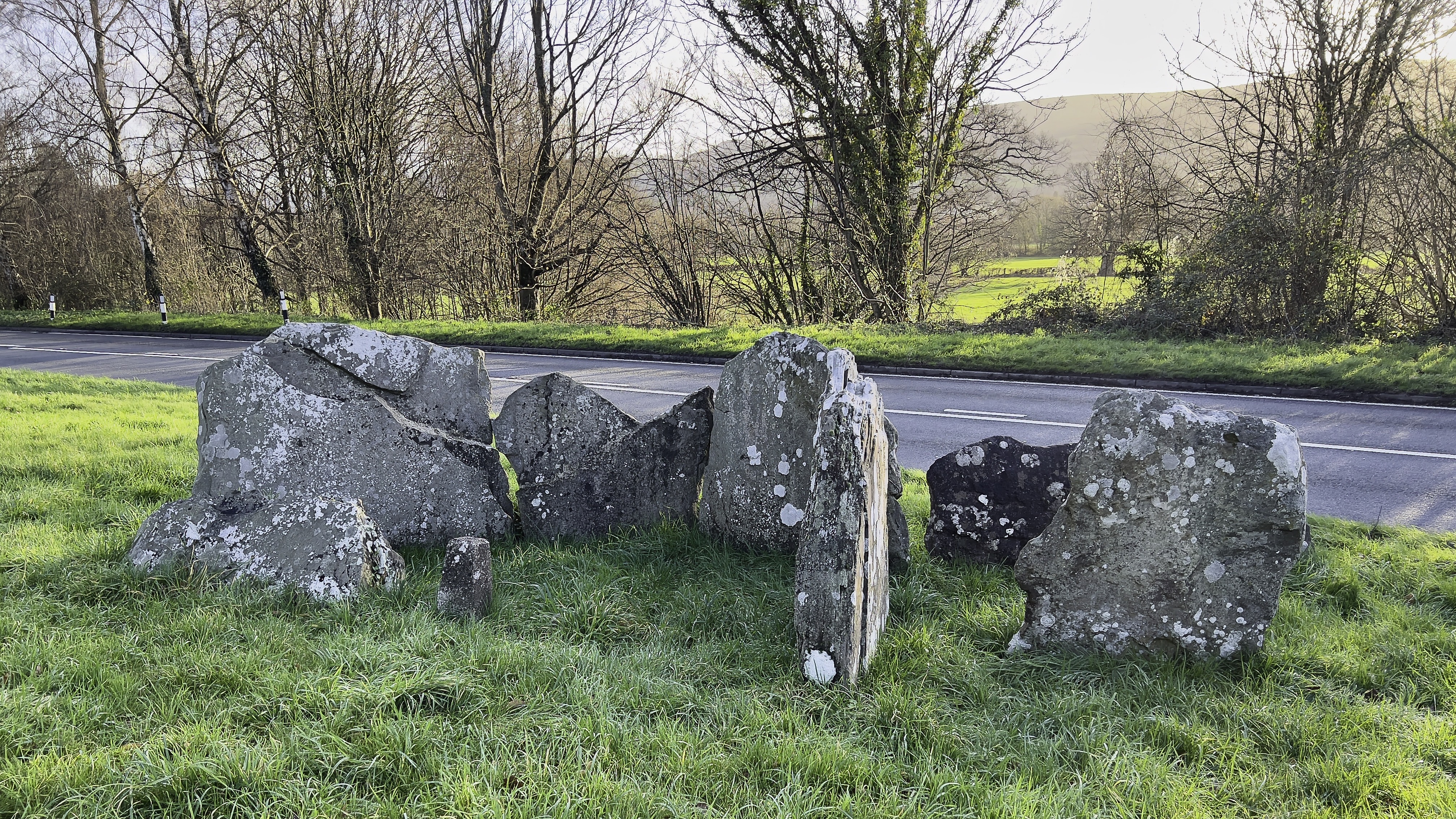 Even though the mound has been heavily truncated following 19th-century antiquarian removals, and compounded by 20th-century road works, the remains still speak of a complex building process. Imagine rubble and carefully placed stone blocks forming a long cairn, orthostats rising to create chamber walls, and capstones originally sheltering the burial spaces. The chambers were laterally accessible (from the side of the mound) rather than from a single end, a trait that archaeologists read as reflecting particular ritual practices: repeated, collective deposits rather than single, individual burials. Excavators recorded evidence that the chambers were used over an extended period, with multiple depositional events and episodes of deliberate blocking or sealing — the sort of long-term, communal use that builds social memory.